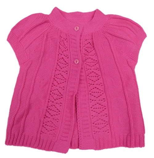 Fuchsiová žebrovaná pletená propínací vesta se vzorem