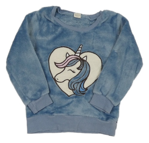 Modrá chlupatá domácí mikina s jednorožcem