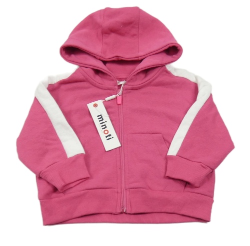 Nové - Tmavorůžovo-bílá propínací mikina s pruhy a kapucí Minoti