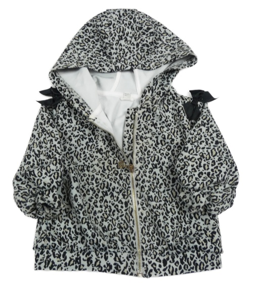 Světlešedo/béžovo-černá vzorovaná propínací mikina s s mašlemi a kapucí RIVER ISLAND