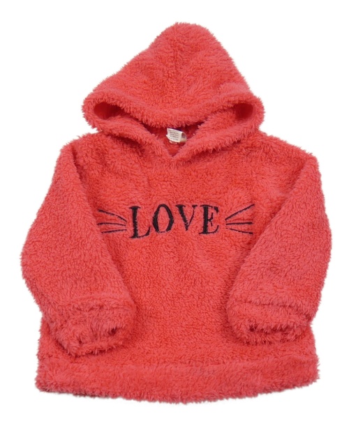 Tmavorůžová chlupatá mikina s nápisem a kapucí