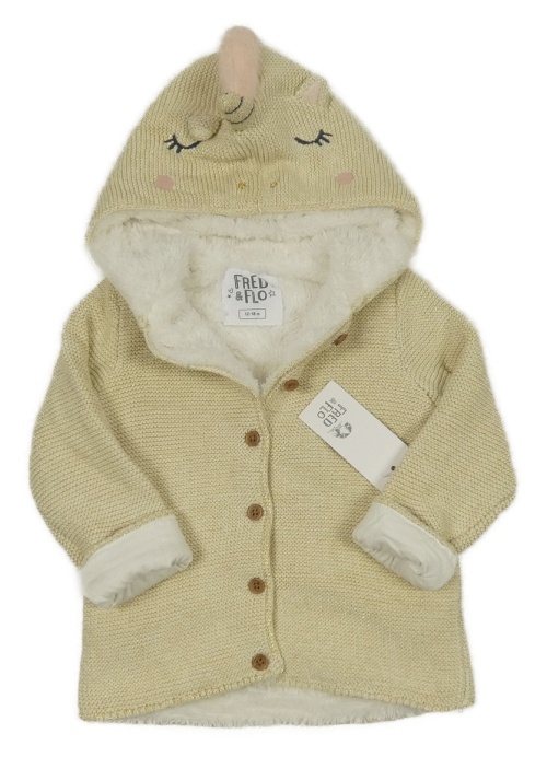 Nové - zlatý zateplený propínací svetr s kapucí - jednorožec F&F