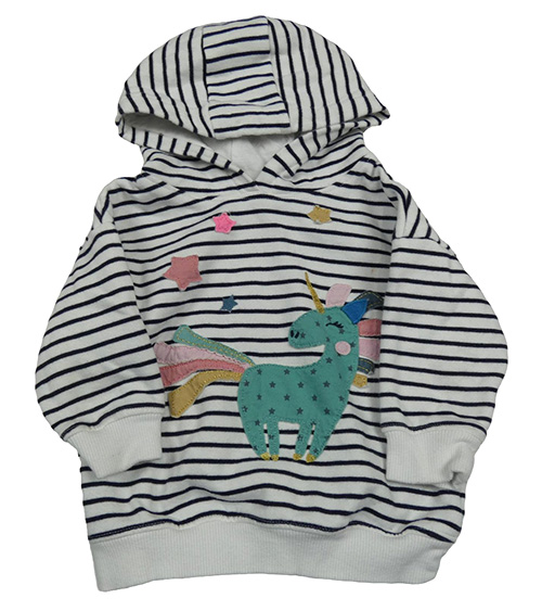 Bílo-tmavomodrá pruhovaná mikina s jednorožcem a kapucí Next