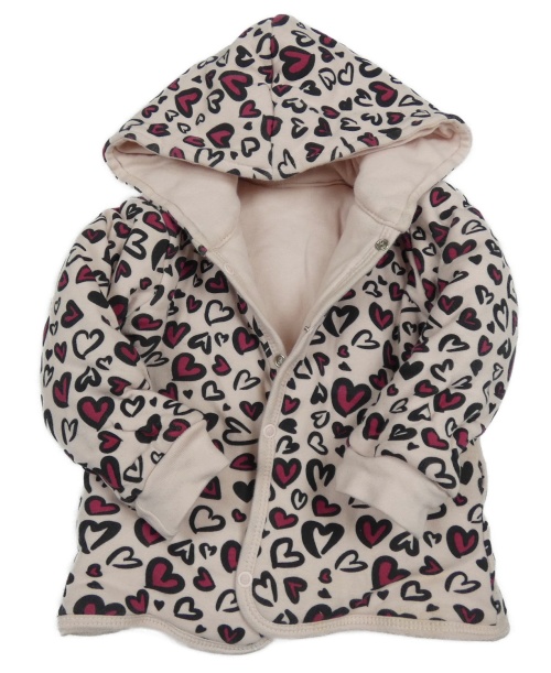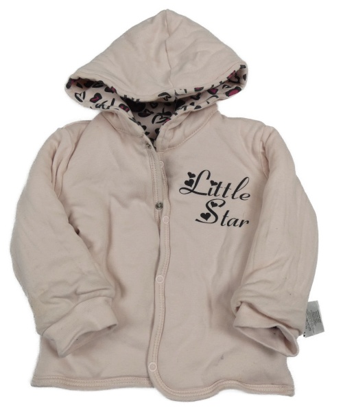 Světlerůžová zateplená oboustranná propínací mikina s nápisem a kapucí
