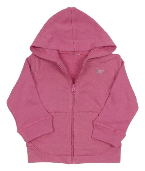 Tmavorůžová propínací mikina s motýlem z kamínků a kapucí Cherokee