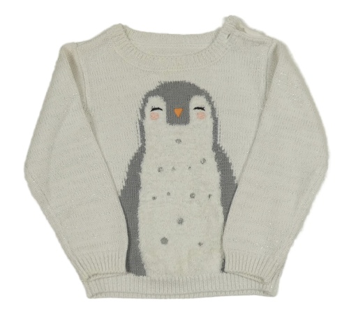 Bílo-stříbrný melírovaný svetr s tučňáčkem Mothercare