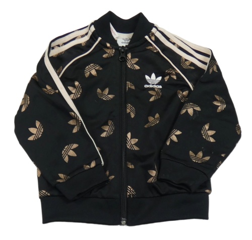 Černá vzorovaná sportovní propínací mikina s logem a pruhy Adidas