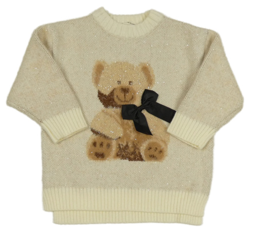 Béžový třpytivý svetr s medvídkem a mašlí River Island