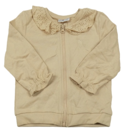 Světlehnědá propínací mikina s límečkem s madeirou a výšivkou So Cute