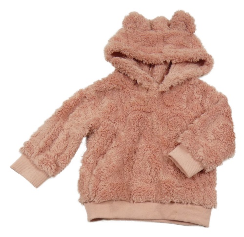 Světlerůžová chlupatá mikina s kapucí