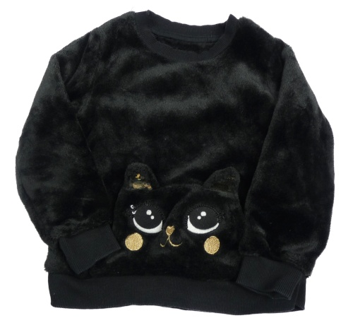 Černá chlupatá mikina s kočkou