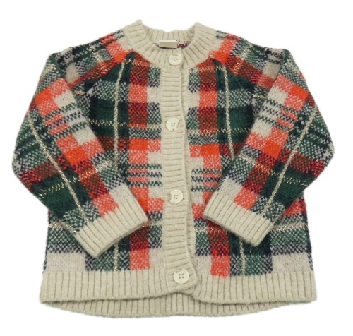 Světlebéžovo-červeno-smaragdovo-tmavomodro-zlatý kostkovaný vlněný propínací svetr H&M