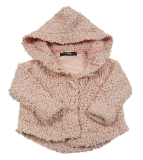 Světlerůžový huňatý propínací podšitý svetr se třpytkami a kapucí George
