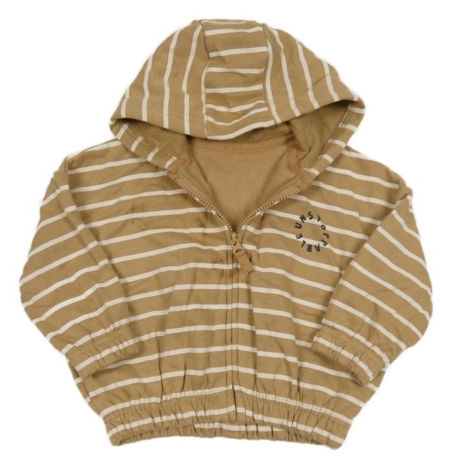 Béžovo-bílá pruhovaná propínací oversize mikina s nápisem a kapucí Dunnes