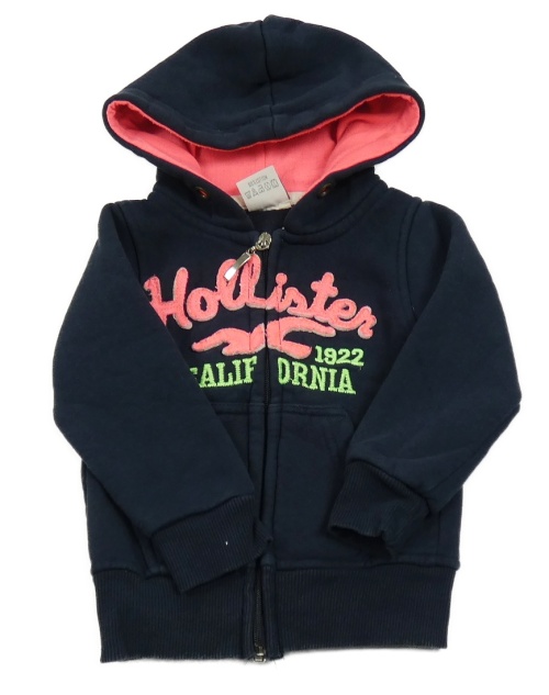 Tmavomodrá propínací mikina s nápisem a kapucí Hollister