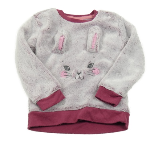 Malinovo-šedá chlupatá mikina se zajíčkem