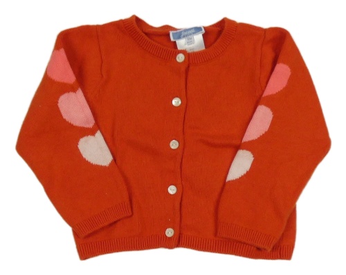 Červený vlněný propínací svetr se srdíčky Jacadi