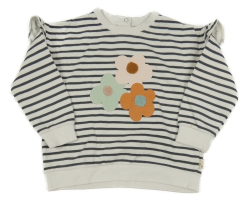 Bílo-černá pruhovaná mikina s květy a volánky Maybe baby