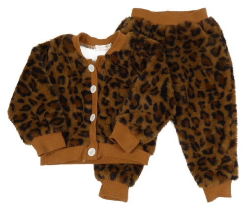 2set - Hnědá leopardí chlupatá propínací mikina + tepláky