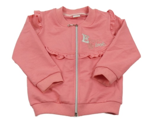 Korálová propínací mikina s nápisy a volánky