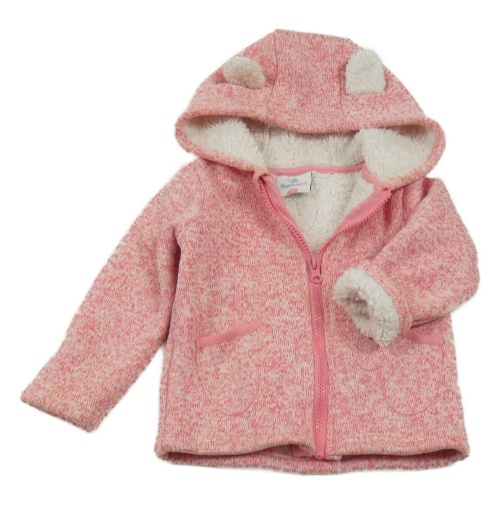 Růžová melírovaná pletená zateplená propínací mikian s kapucí Topomini
