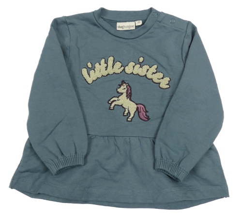 Tmavomodrošedá tepláková tunika s jednorožcem a nápisem