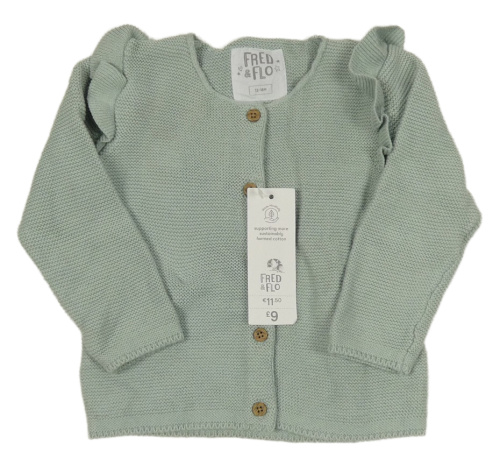 Nové - olivovošedý propínací svetr s volánky F&F