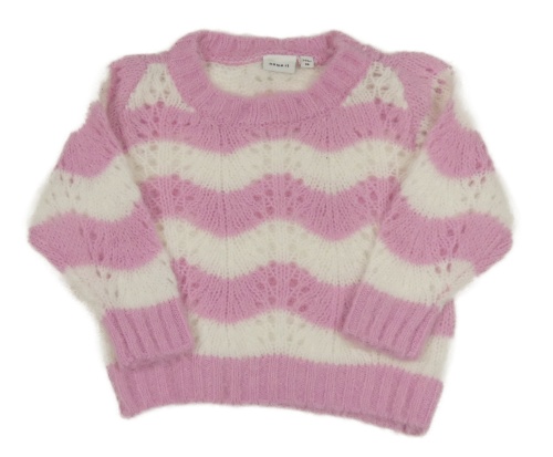 Růžovo-bílý ažurový svetr name it.