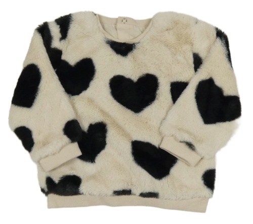 Smetanovo-černá kožešinová mikina se srdíčky Nutmeg