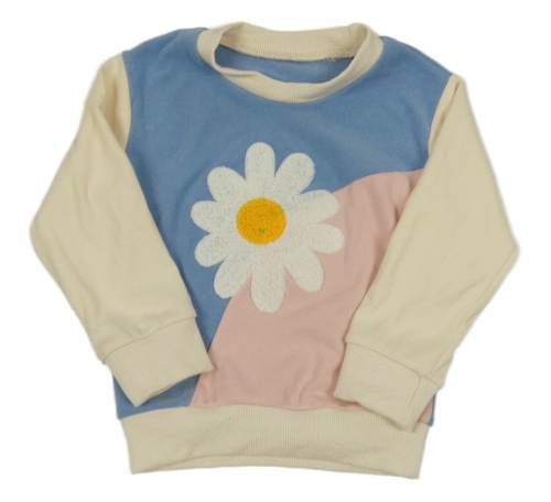 Modro-světlerůžovo-smetanová mikina s kopretinou