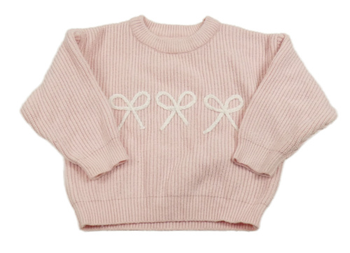 Světlerůžový žebrovaný oversize svetr s mašličkami