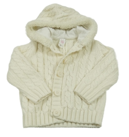 Bílý propínací svetr s copánkovým vzorem a kapucí C&A