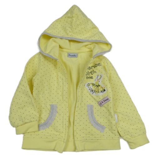Žlutá puntíkatá propínací mikina s šaty a kapucí