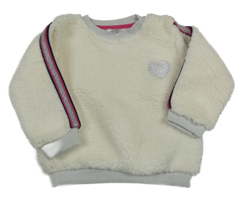 Smetanovo-barevná huňatá mikina s pruhy a srdcem Ergee