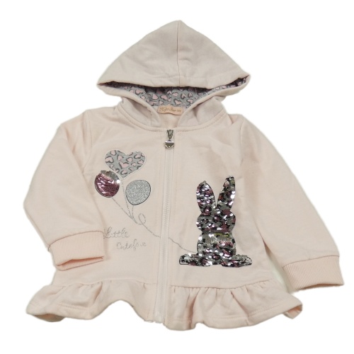 Světlerůžová propínací mikina s králíkem z překlápěcích flitrů a kapucí