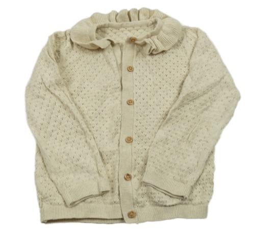 Béžový perforovaný propínací svetr s volánkem Tu