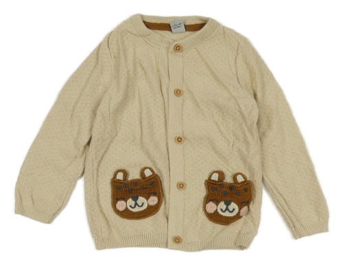 Světlehnědý propínací svetr s medvídky Tu
