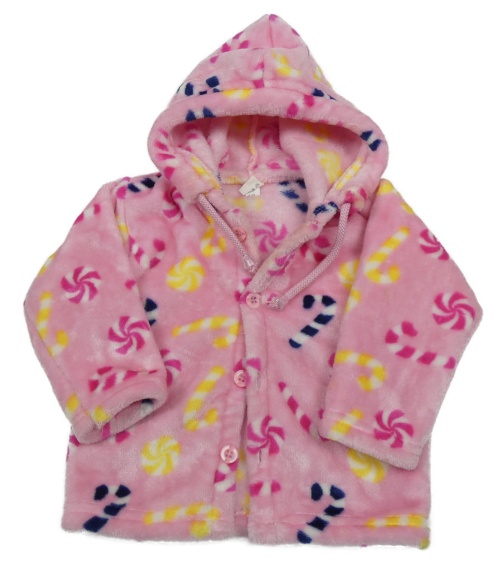 Růžová plyšová propínací mikina s lízátky a kapucí