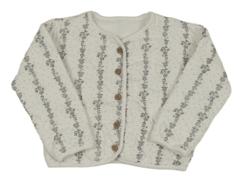 Bílá puntíkatá prošívaná zateplená propínací mikina s květy George