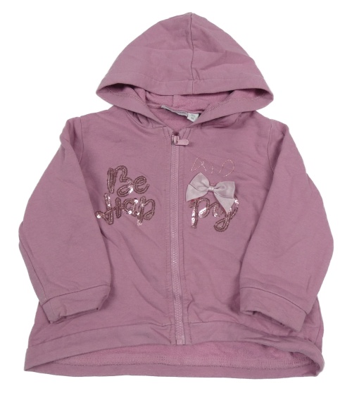 Růžová propínací mikina s nápisem z flitrů a kapucí Sarahanda