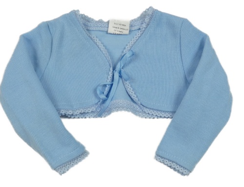 Světlemodré žebrované bolerko s krajkou