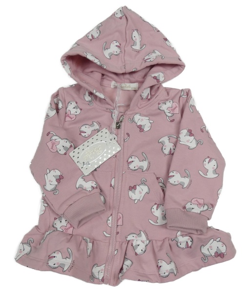 Nové - Světlerůžová propínací mikina s kočkami a kapucí
