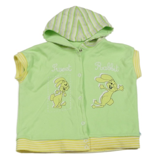 Pistáciovo-pruhovaná tepláková vesta se zajíčky a kapucí