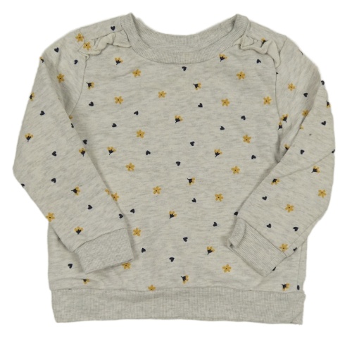 Světlešedá melírovaná mikina s kytičkami a srdíčky a volánky George