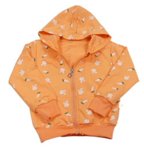 Oranžová propínací mikina se zajíčky a kapucí