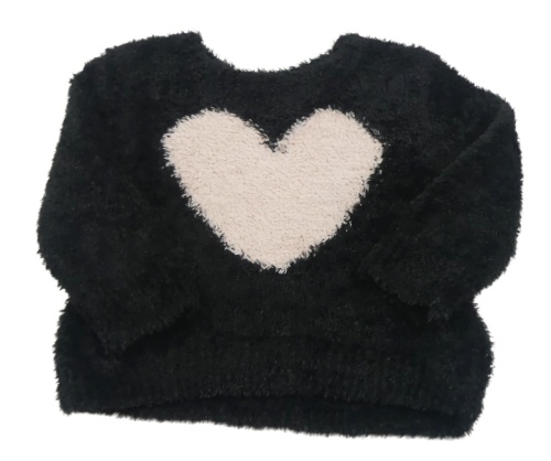 Černý chlupatý svetr s růžovým srdcem H&M