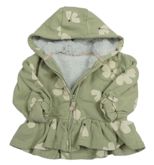 Olivová květovaná propínací zateplená mikina s kapucí Nutmeg