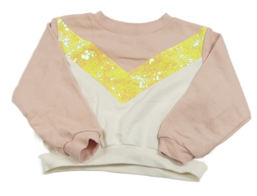 Bílo-světlerůžová mikina se žlutými flitry H&M
