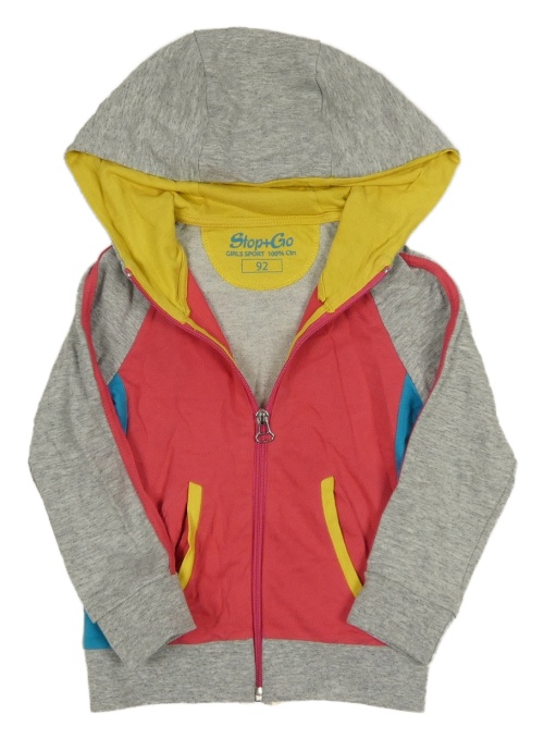 Nové - Šedo-růžovo-modrá propínací mikina s kapucí Stop+Go