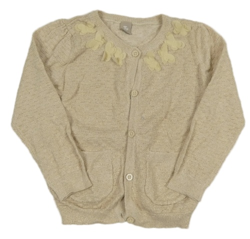 Béžovo-zlatý propínací svetr s motýlky Tu